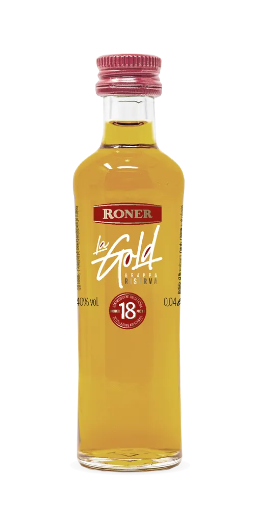 Roner La Gold Riserva (1x 0,04l) - Grappa of the year 2019 and 2020, aged 18 months in oak barrels, traditionally distilled in South Tyrol by the most awarded distillery in Italy